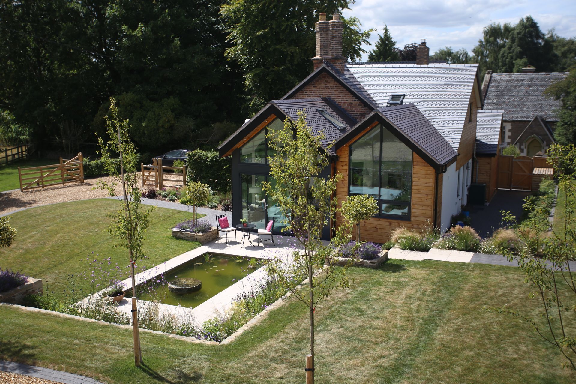 This project near Albrighton, Wolverhampton was developed around the client’s vision for their newly purchased property. Having bought an old Victorian schoolhouse that was outdated and too small for their needs, the family added a new extension that managed to sympathetically blend a modern mix of material in with the original Victorian building. Once the extension was complete, a new outdoor area was required to complement the finished property.