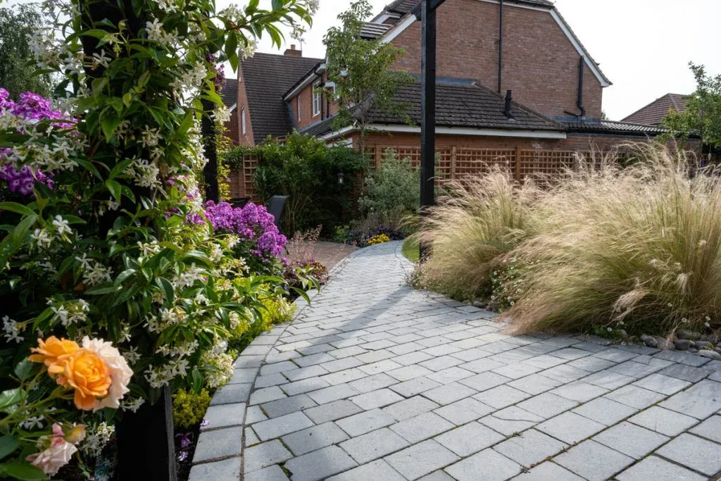 The addition of a large family seating area in the heart of the rear garden is accessed via a pergola walk that lifts the planting up to a higher level and adds some height and drama to the space.